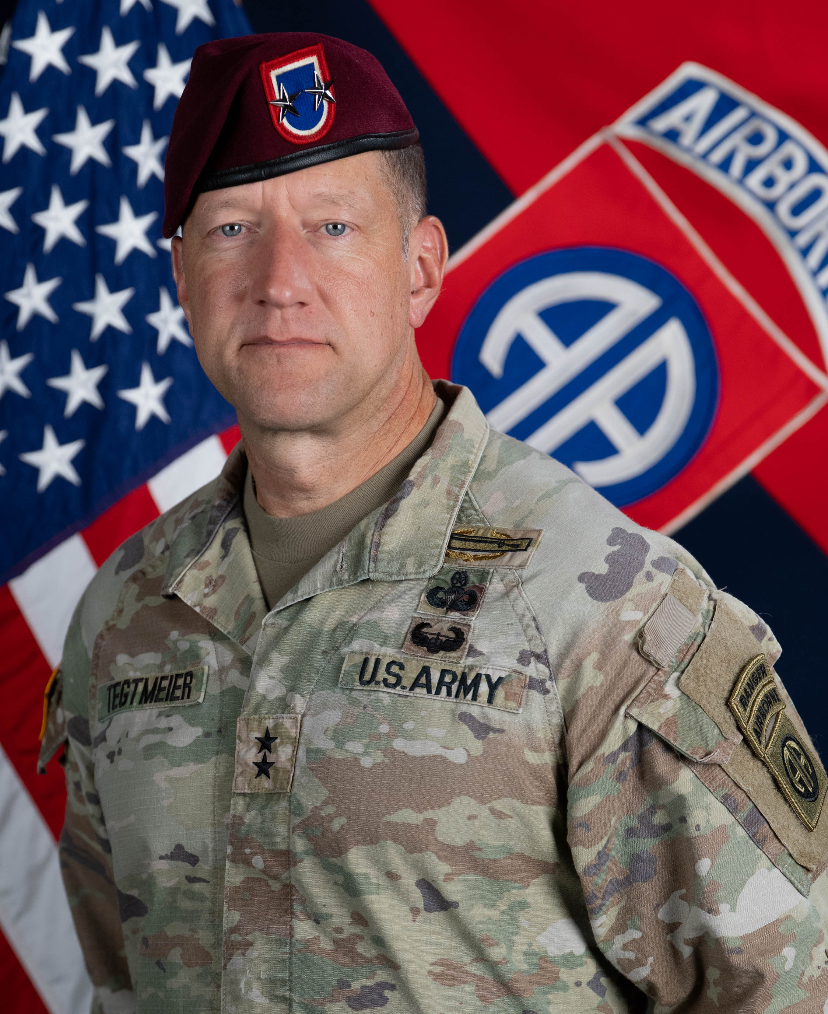 Major GeneralBrandon TegtmeierCommanding General, 82nd Airborne Division(Click on photo for full size) Command Sgt. Maj. Randolph Delapena Command Sgt. Maj., 82nd Airborne Division (Click on photo for full size) (Click on BIO for PDF) (Click on BIO for PDF)