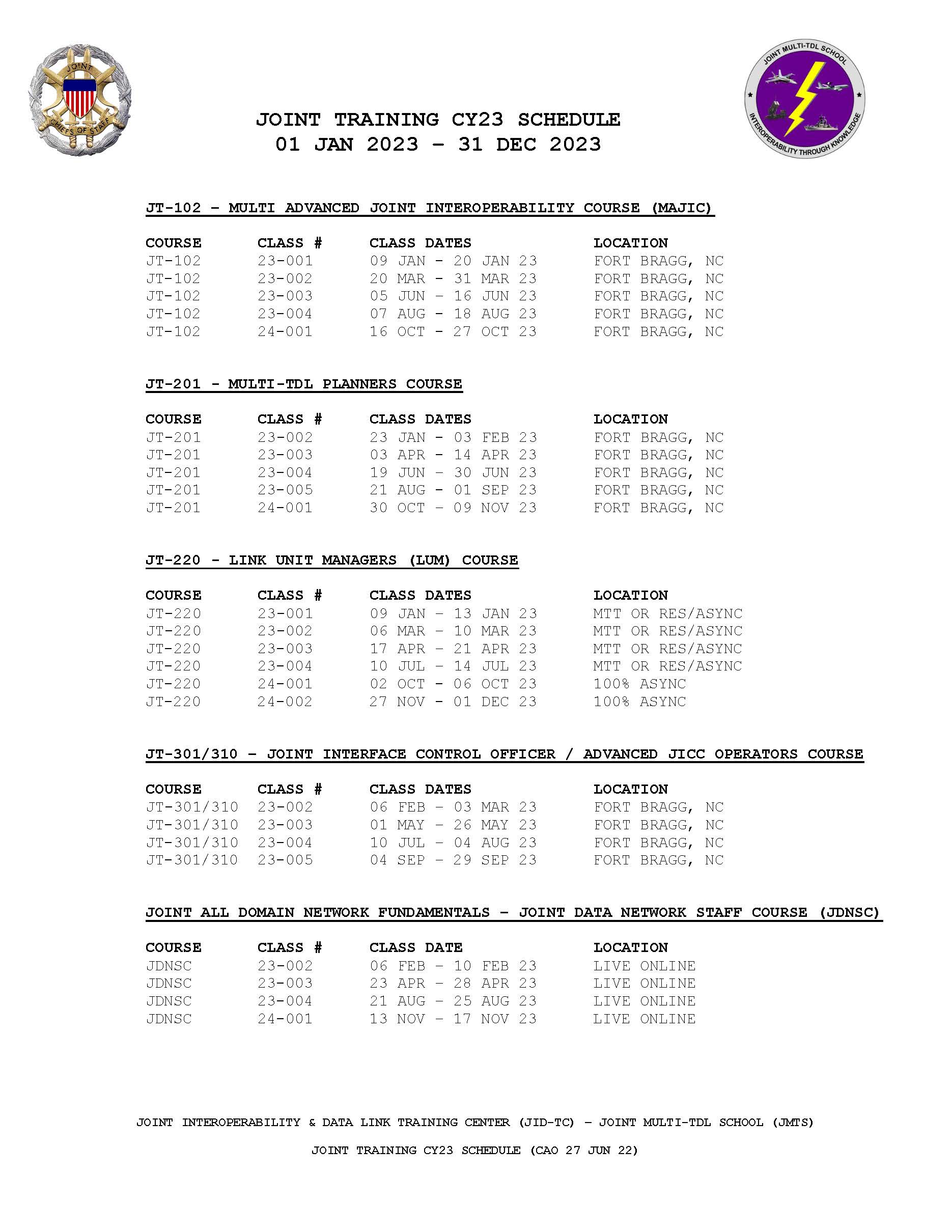 JT-102 * - (MAJIC) Multi-TDL Advanced Joint Interoperability Course (2 weeks)