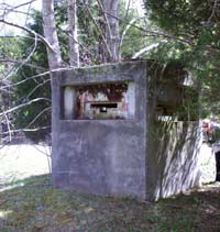 The storage facilities for the weapons had several layers of security. First, the bunkers were constructed using reinforced concrete that was up to 17 feet thick. They were built either entirely underground or covered with a deep layer of earth. Armed Marines in pillboxes (small concrete guardhouses) watched over the entrances to each storage bunker, which were secured with heavy blast doors. Inside the bunker, the tunnel to the storage rooms was secured with a metal cage-type door and a bank vault door. Additional bank vault doors secured the entrance to each weapons storage room.