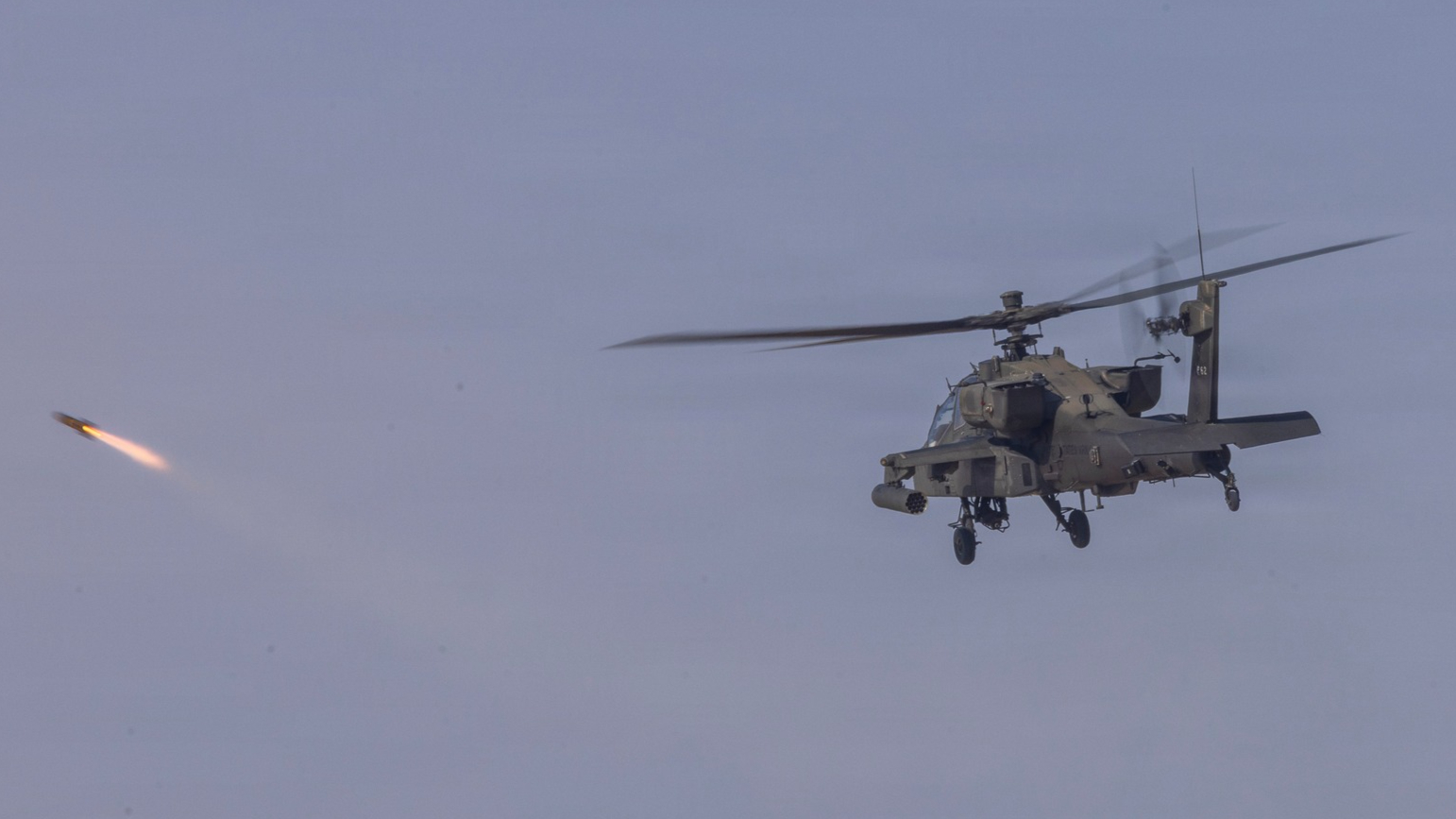 KUWAIT — A 4th Combat Aviation Brigade, 4th Infantry Division, AH-64D Apache attack helicopter assigned to Task Force Shikra (3-4 AHB) participates in a large-scale, advanced counter-drone exercise with international partners at the Udari Range Complex in Kuwait. From engaging unmanned aerial system targets with hellfire missiles to suppressing stationary targets with 30 mm rounds, Task Force Shikra showcased interoperability, speed, and combat readiness with partner forces during the Kuwaiti-Led exercise.