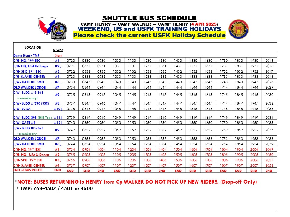 | USAG Humphreys Inter-Garrison Bus Service Page |