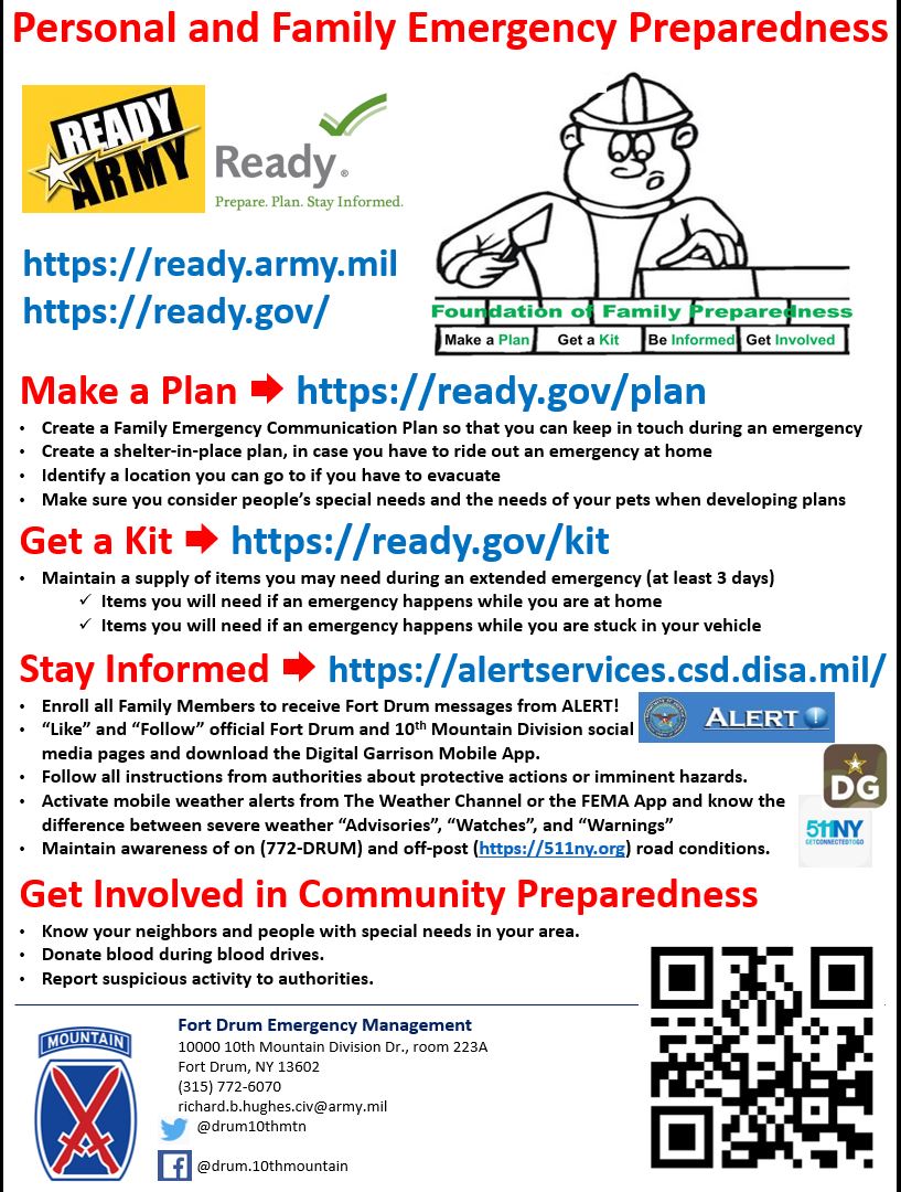 We encourage members of the Fort Drum community to monitor local news media for weather conditions and stay abreast of Fort Drum's status by using one or more of the following methods: