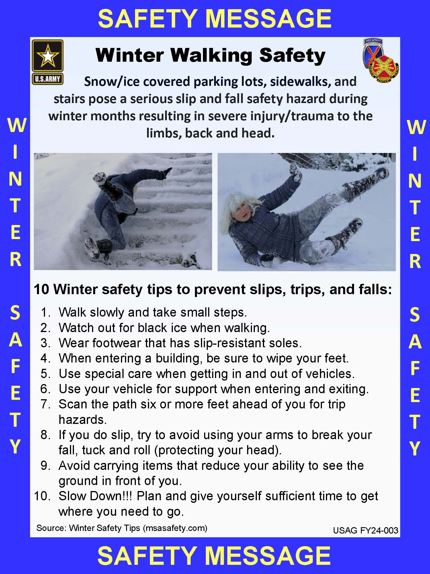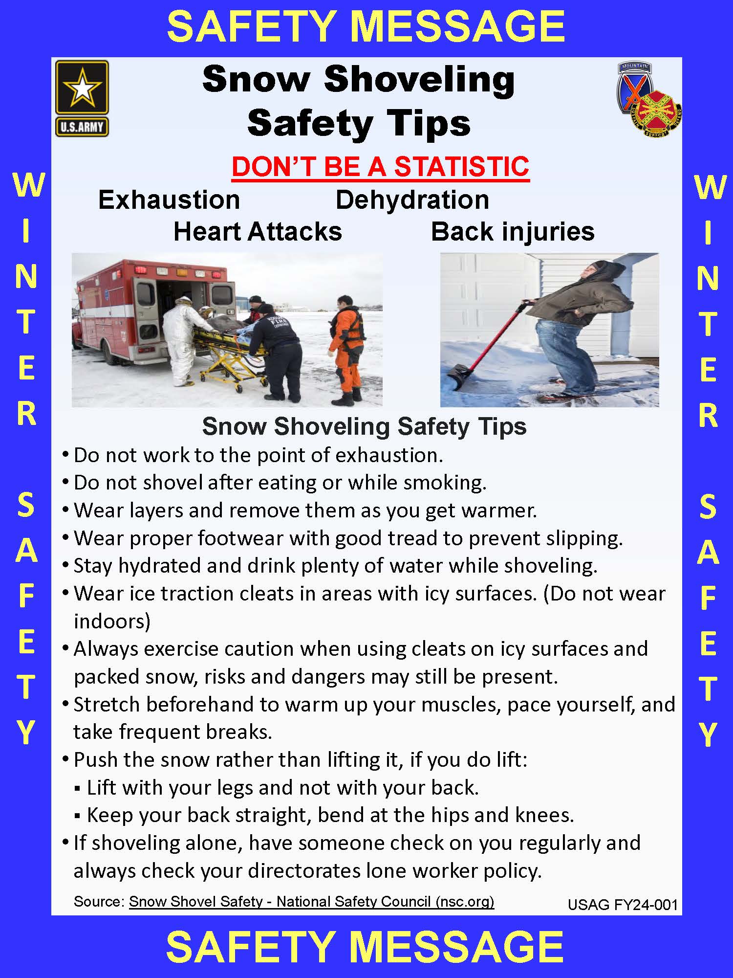 Ready or not, winter weather has returned to the North Country. Whether you are new to the area, or you are a long-time resident and need to brush up on your winter skills, the Garrison Safety Office has you covered. The Safety staff has prepared some tips to help you transition to the wintry wonderland we call home.