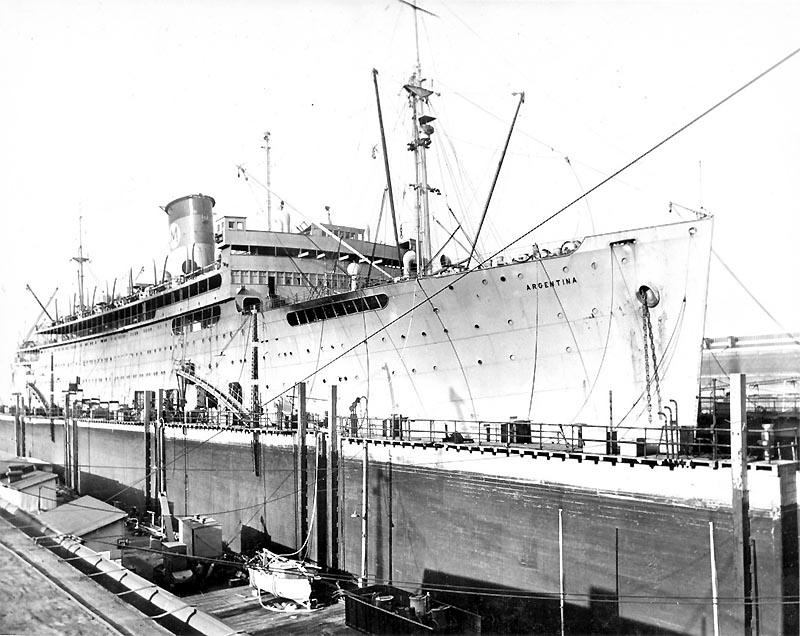 Sunday, December 10, 1944 @ 0000 – The 86th boarded the SS Argentina. No one had much time to think that morning. It was the 10th of December 1944, and a cold breeze swept across Hampton Roads. Every man was busy with his equipment. It was a (big) job to handle the overloaded pack and duffle bag that each man carried, to say nothing of the rifle, gas mask, and steel helmet. Somehow they managed to make it past the checker and up the slanting plank to the deck of the SS Argentina, a former luxury liner on the Caribbean run. Eventually each man found himself in a bunk and began to shed his equipment.
