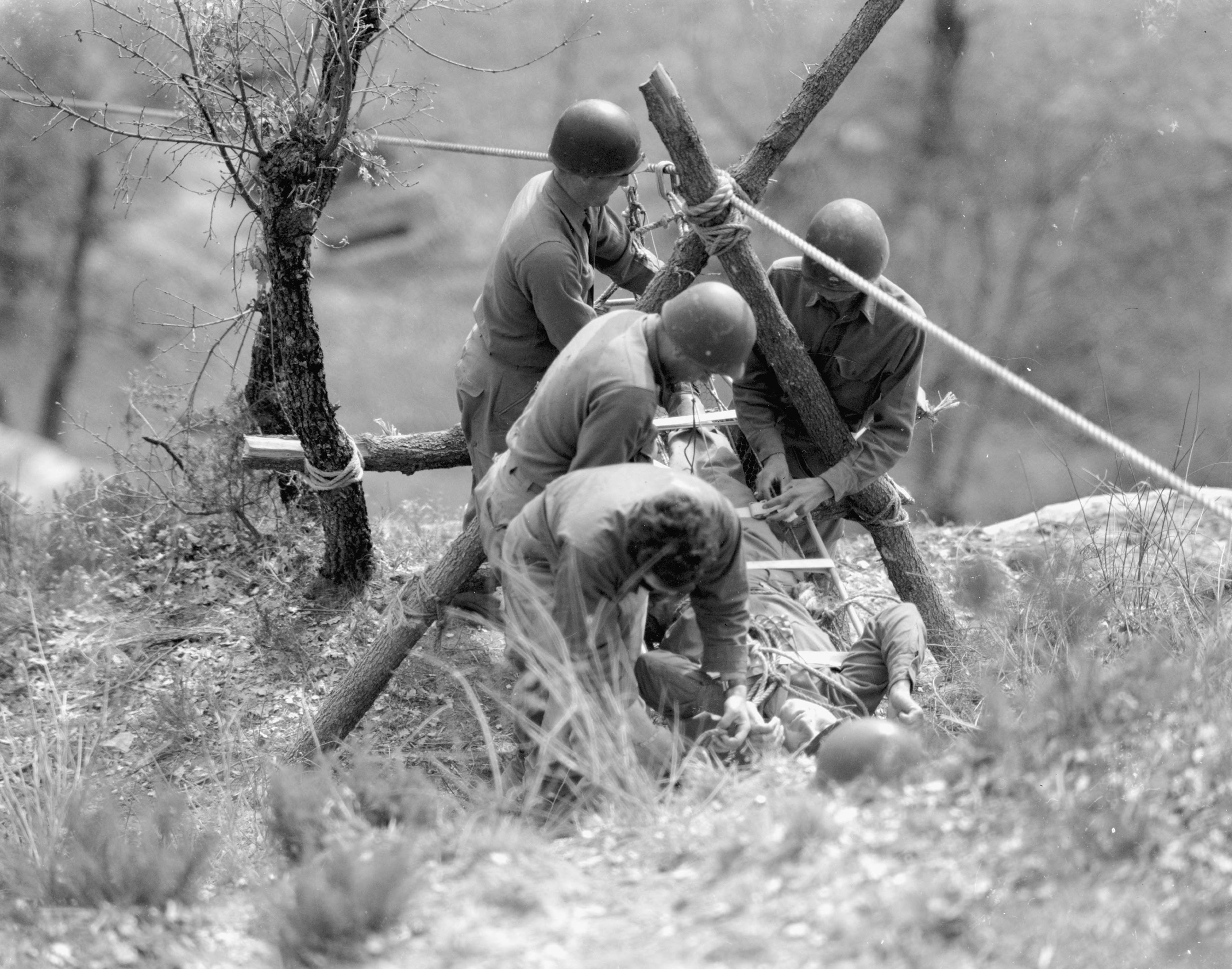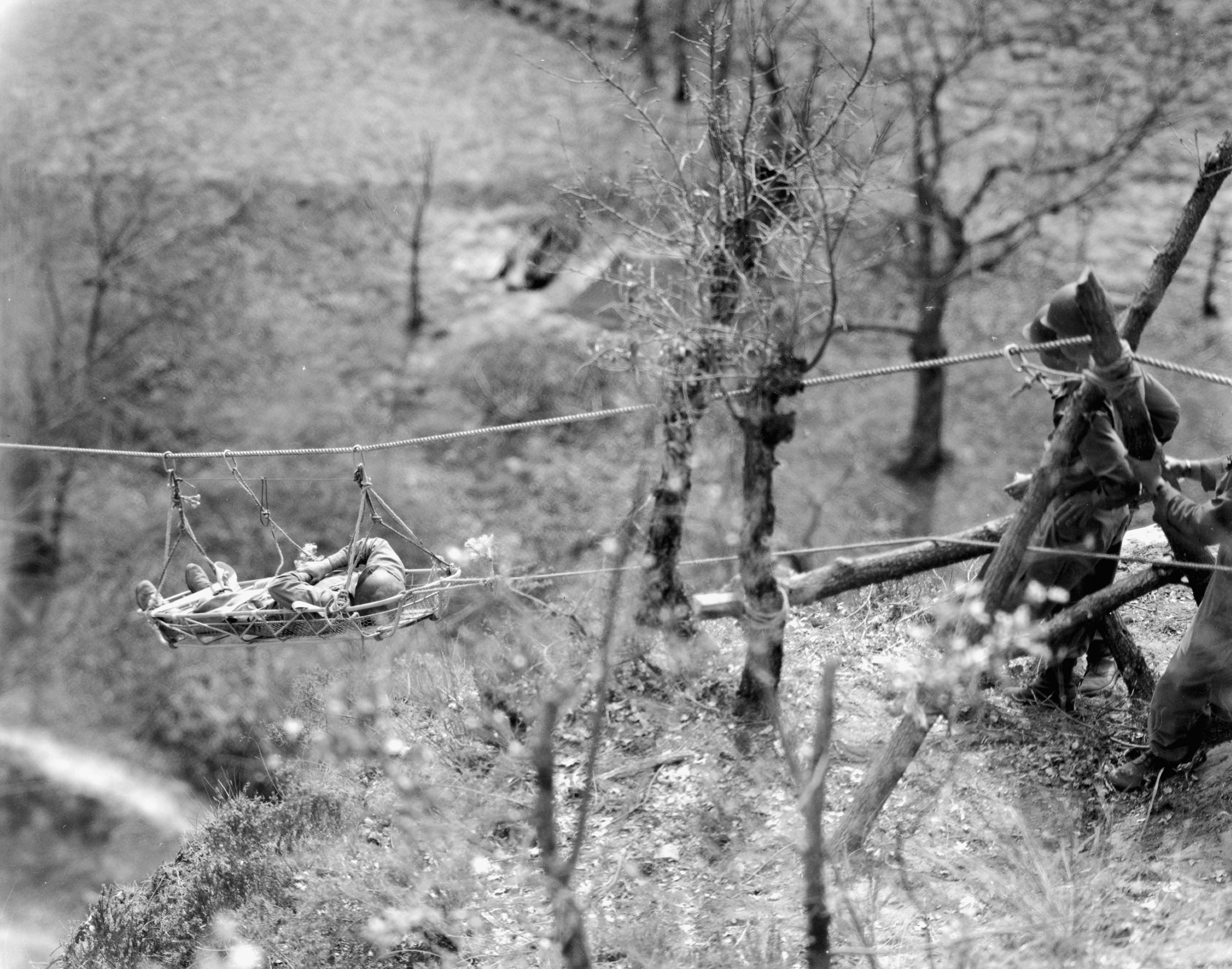 skillful ingenuity of Company D, 126th Engineer Mountain Battalion, wounded men were