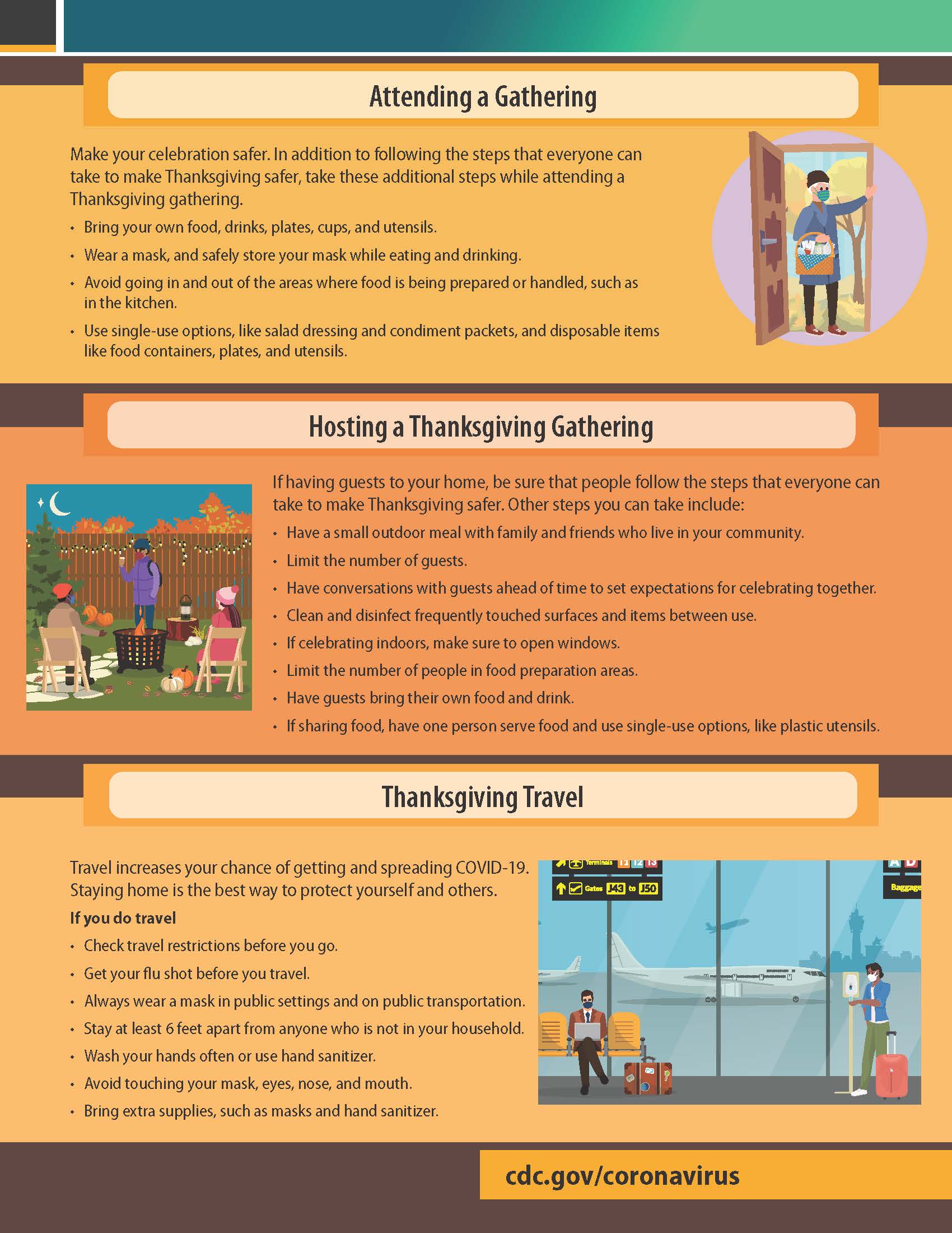 The Centers for Disease Control and Prevention has some COVID-friendly suggestions for celebrating the holiday. See below. (Click on the images to enlarge them.)