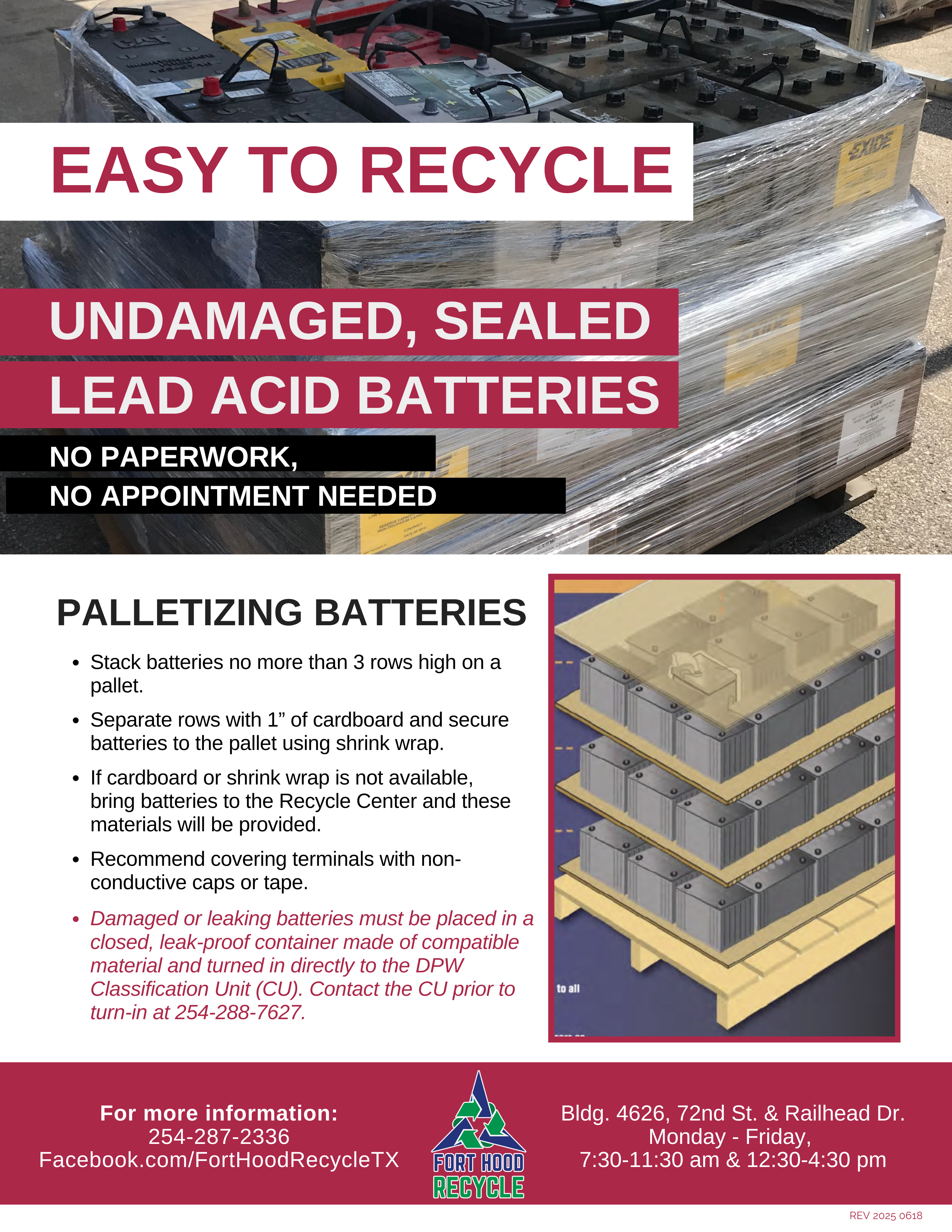 These contaminates can injure our team members, who are connected to the military community as a Family member, veteran and/or spouse. Improper disposal of these items has led to more than 10 fires at the Fort Hood Recycle Center in the past two years.