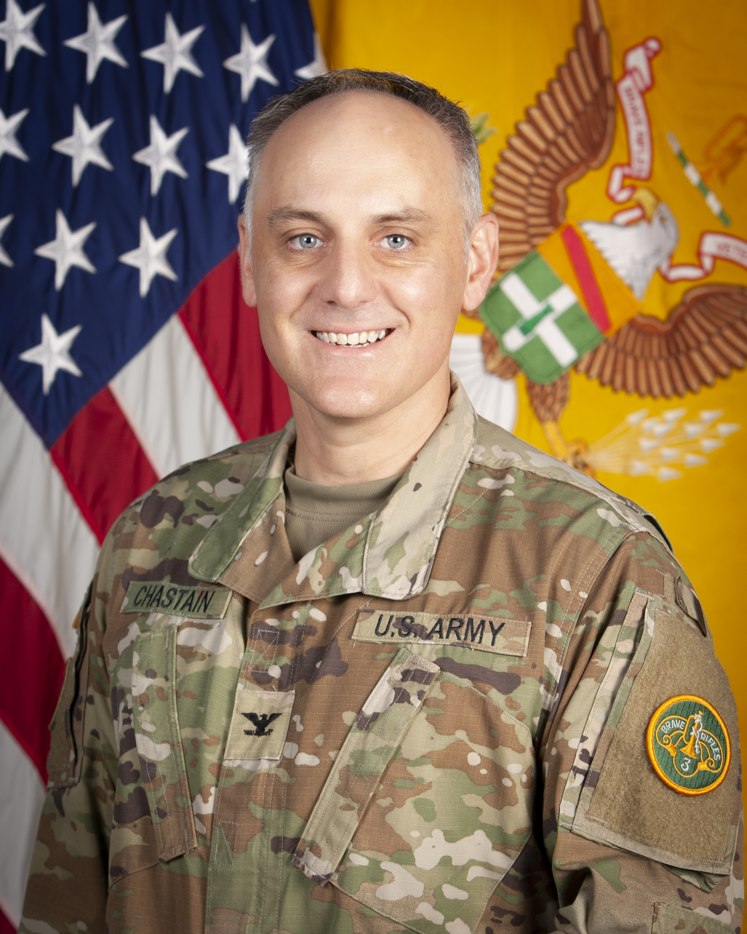COL Chastain is a graduate of the U.S. Marine Corps Expeditionary Warfare School, the Command and General Staff College, the U.S. Joint Forces Staff College, and the U.S. Army War College. He earned a Master of Science in Political Science from the University of Oregon and a Master of Arts in Defense Strategy from the U.S. Army War College. COL Chastain’s awards and decorations include the Bronze Star Medal with Valor, the Defense Meritorious Service Medal, the Combat Action Badge, and the Parachutist Badge.