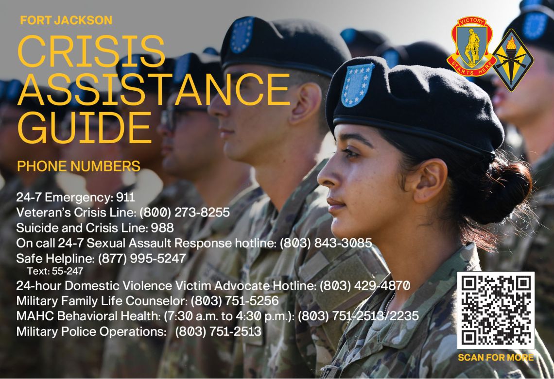 Fort Jackson Crisis Numbers: https://home.army.mil/jackson/contact/crisis-phone-numbers
