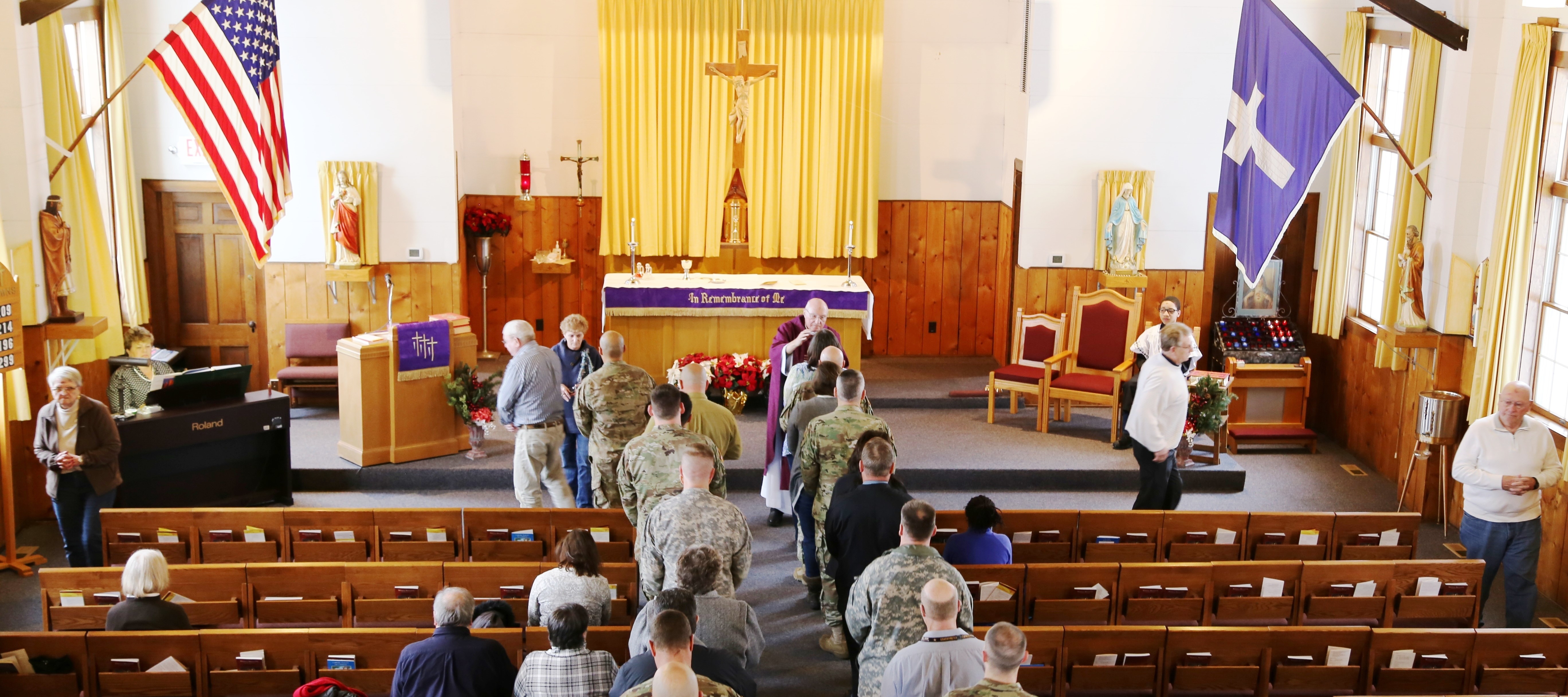 Chapel 10, Building 1759. Mass at 9:15 a.m. Sunday. Fellowship starts at 9:30 a.m. and follows until 11 a.m. at the Religious Support Office (RSO), Building 2675. Call 502-898-3528.