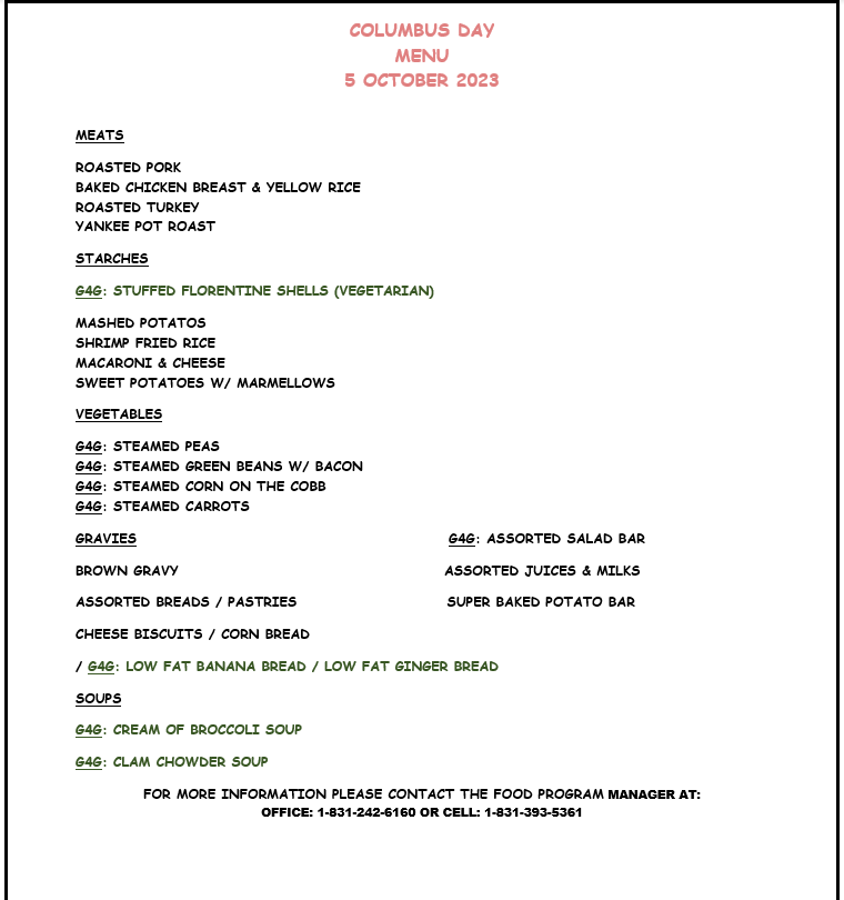 DFAC Hours of Operations Weekday Weekend Holidays Operation