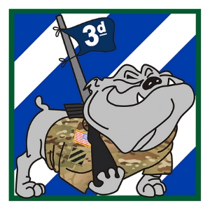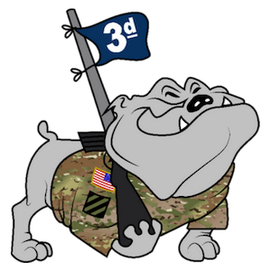 Rocky the Bulldog is the symbol of the 3rd Infantry Division. He was created by Walt Disney himself in 1965. The 3rd Infantry Division gained the right to display Rocky through an exchange of letters between Disney Productions and the 3ID commander at the time, MG Albert O. Connor.