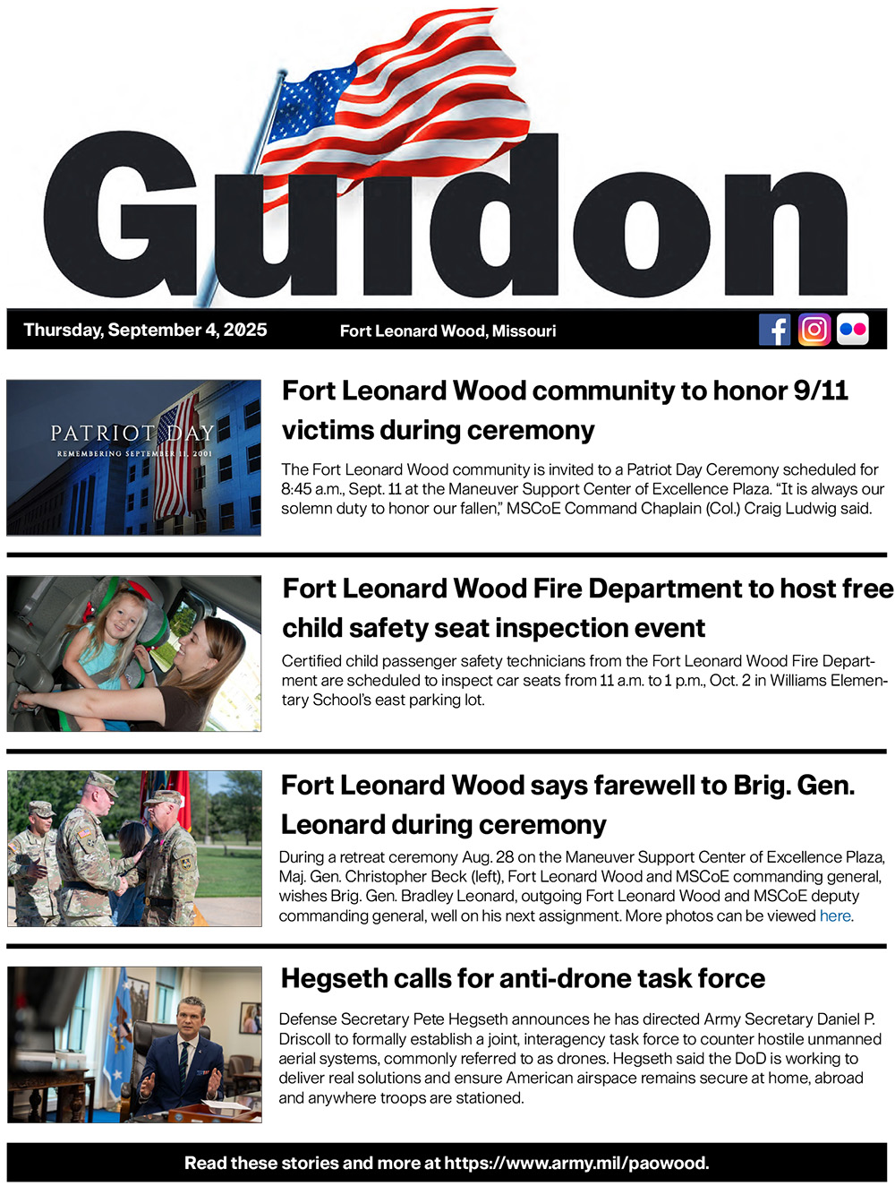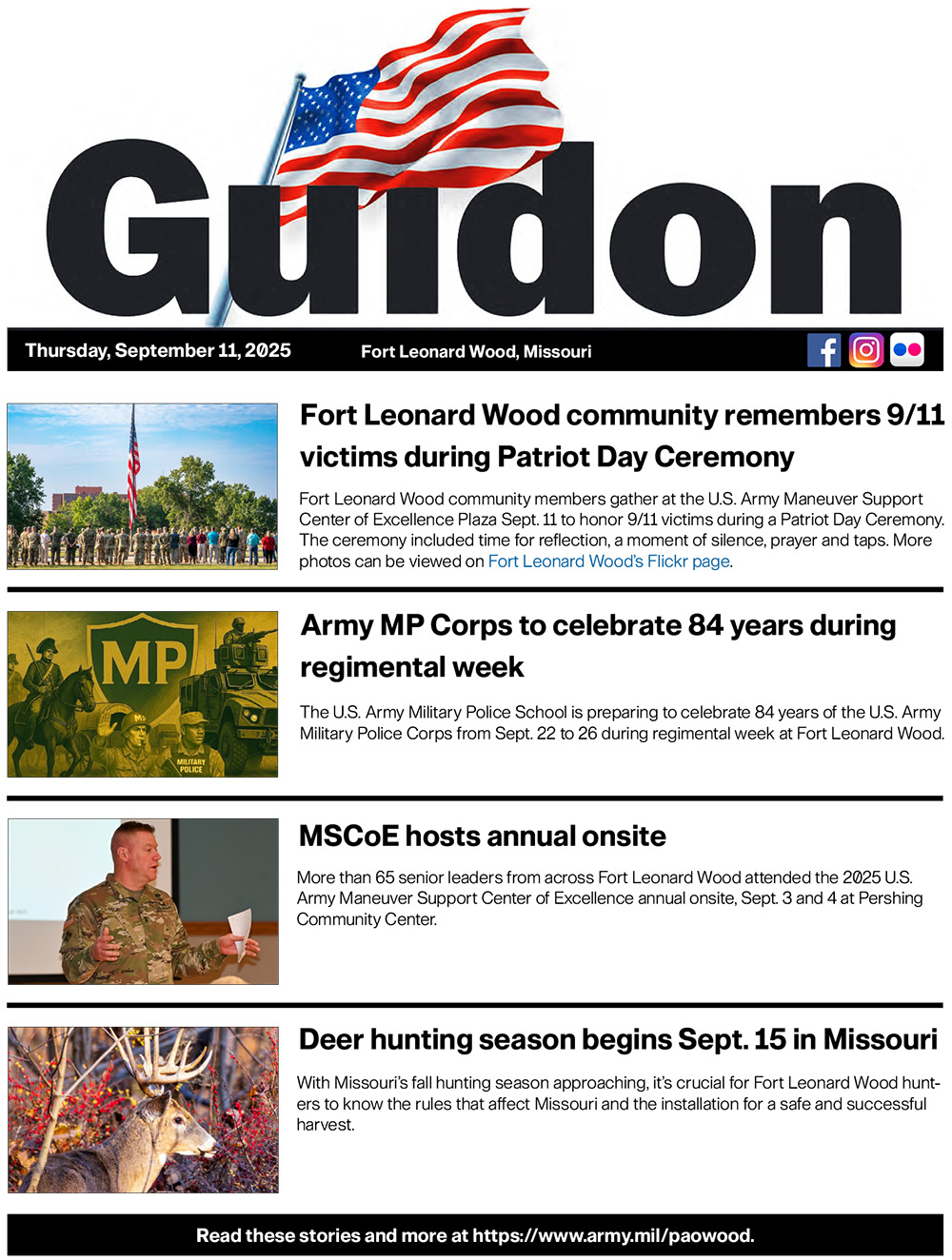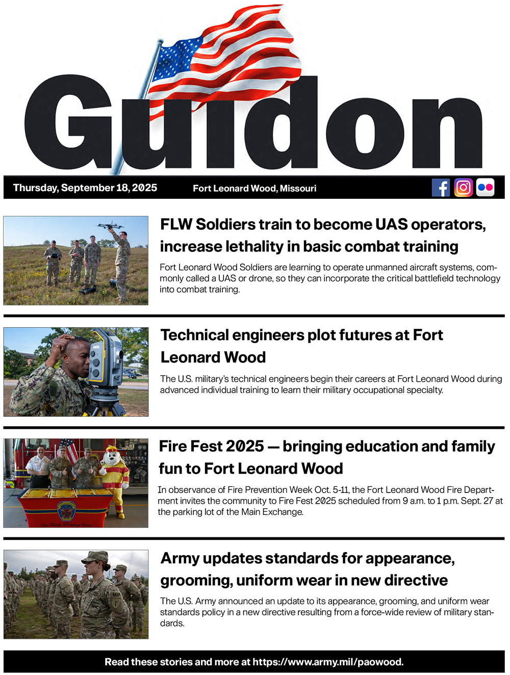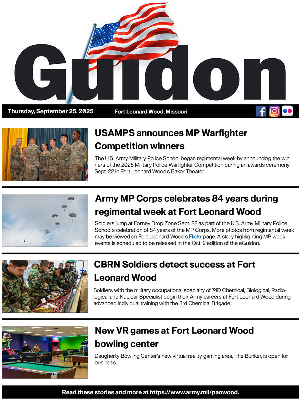 EGUIDON 09/25/2025 EGUIDON 09/18/2025 EGUIDON 09/11/2025 EGUIDON 09/04/2025 Additional stories can be found online at army.mil/paowood. Jan EGUIDON 01/13/25 EGUIDON 01/23/25 EGUIDON 01/30/25 Feb EGUIDON 02/07/25 EGUIDON 02/13/25 EGUIDON 02/20/2025 EGUIDON 02/27/2025 Mar EGUIDON 03/13/2025 EGUIDON 03/20/2025 EGUIDON 03/27/2025 Apr EGUIDON 04/03/2025 EGUIDON 04/10/2025 EGUIDON 04/17/2025 EGUIDON 04/24/2025 May EGUIDON 05/02/2025 EGUIDON 05/08/2025 EGUIDON 05/15/2025 EGUIDON 05/22/2025 EGUIDON 05/29/2025 Jun EGUIDON 06/05/2025 EGUIDON 06/13/2025 EGUIDON 06/18/2025 Jul EGUIDON 07/03/2025 EGUIDON 07/10/2025 EGUIDON 07/17/2025 EGUIDON 07/24/2025 EGUIDON 07/31/2025 Aug EGUIDON 08/07/2025 EGUIDON 08/14/2025 EGUIDON 08/21/2025 Sep Oct Nov Dec EGUIDON 12/19/24 Closing Tab