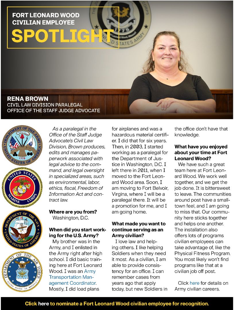 Rena Brown, Civil Law Division Paralegal, Office of the Staff Judge Advocate