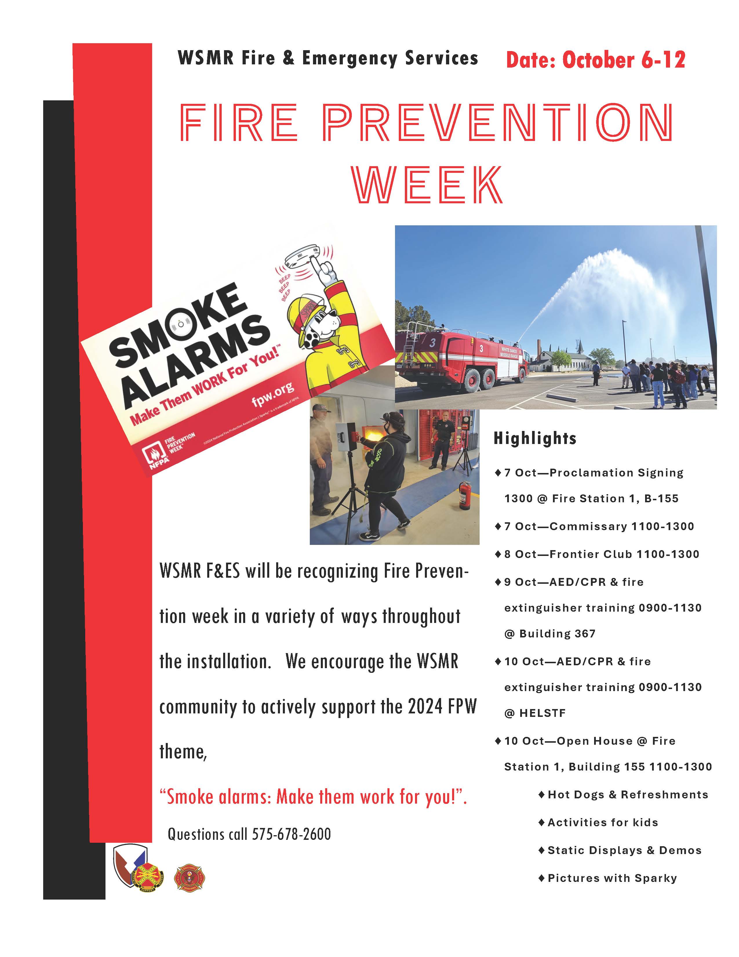 WSMR Fire and Emergency Services will highlight Fire Prevention Week with a variety of events on post.