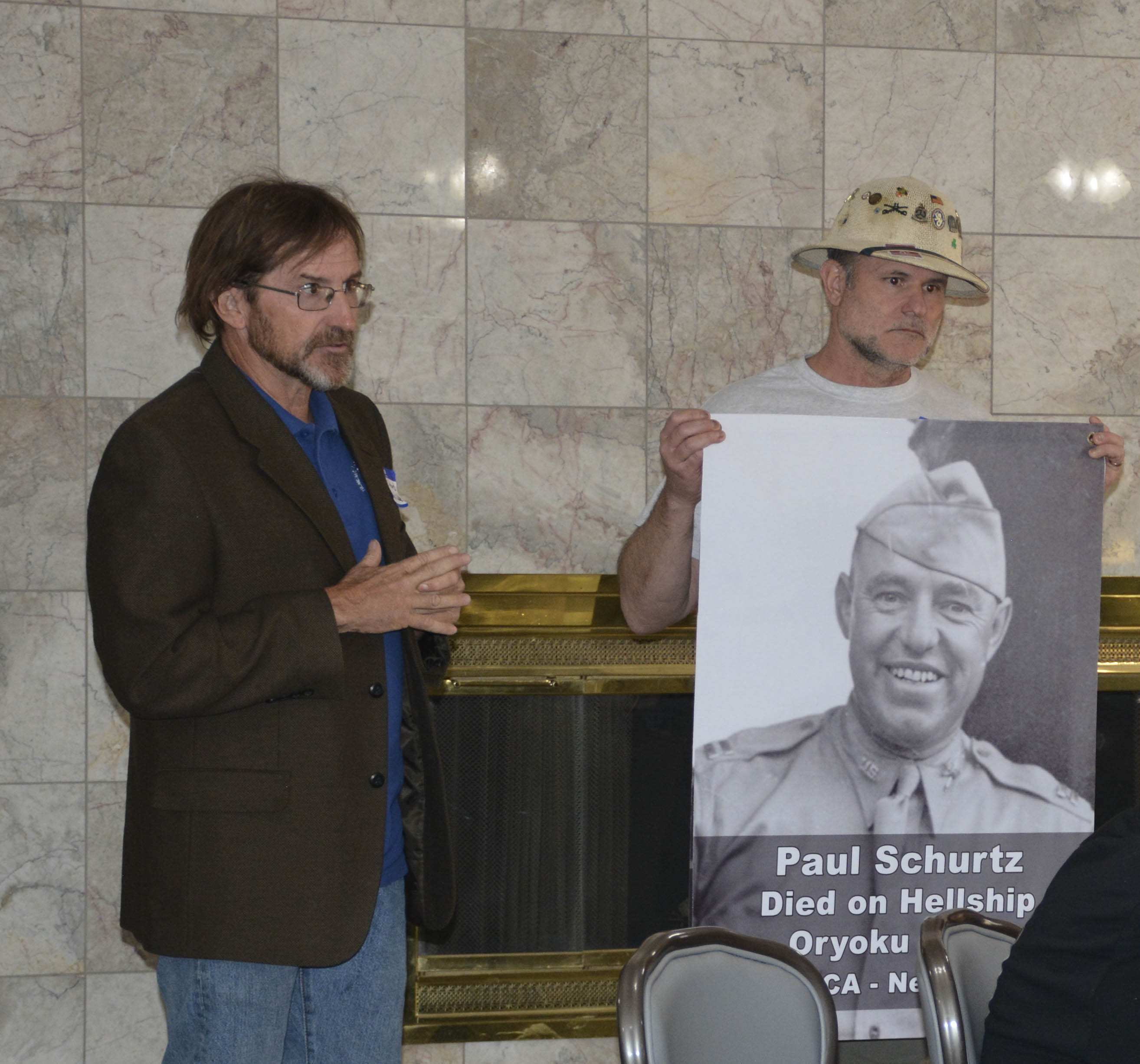 During the reception family members stood up to tell stories of their loved ones who were part of the Battling Bastards of Bataan as Foundation President Bonnie Schurtz read their names.